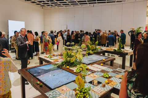 "The Table," a 16sqm installation piece created for a Cyprus Embassy event in Indonesia. This multisensory interactive installation merges cultures through sensory elements and interactive video art, inviting engaging experiences through body conductivity. The installation weaves together the two cultures, one sense at a time, including soundscapes, videos, foods, textures, and smells from each country.